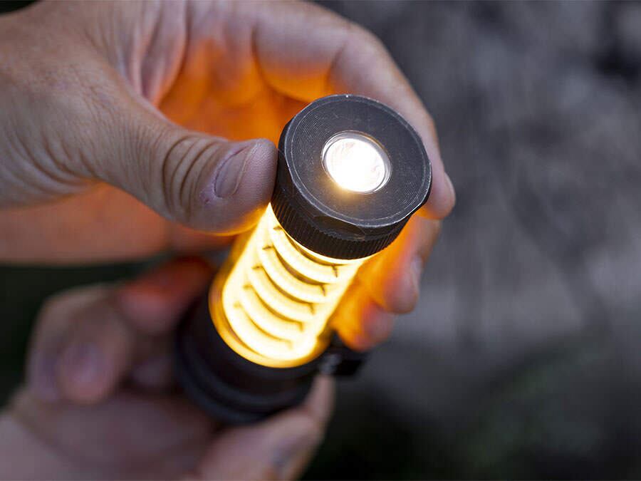 ご購入後、バッテリーを入れる際には、説明書に沿って、フラッシュライトレンズエンドキャップ側を回してバッテリーを挿入してください。その際、締めすぎないようにしてください。 また、ライトセレクターノブ(スイッチ)側を間違って強く回したり、分解をしますと、ライトの破損に繋がりますので、ご注意ください。