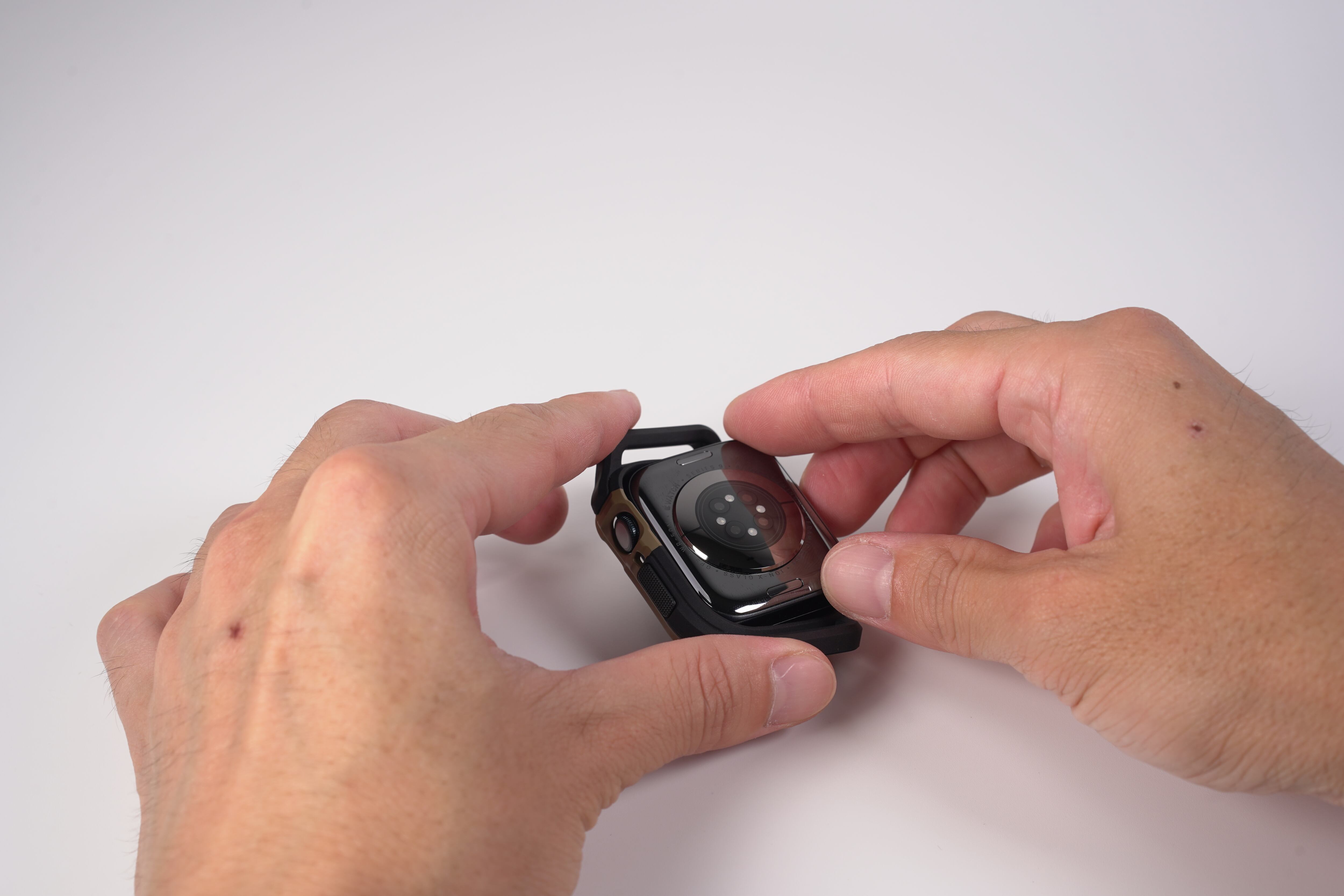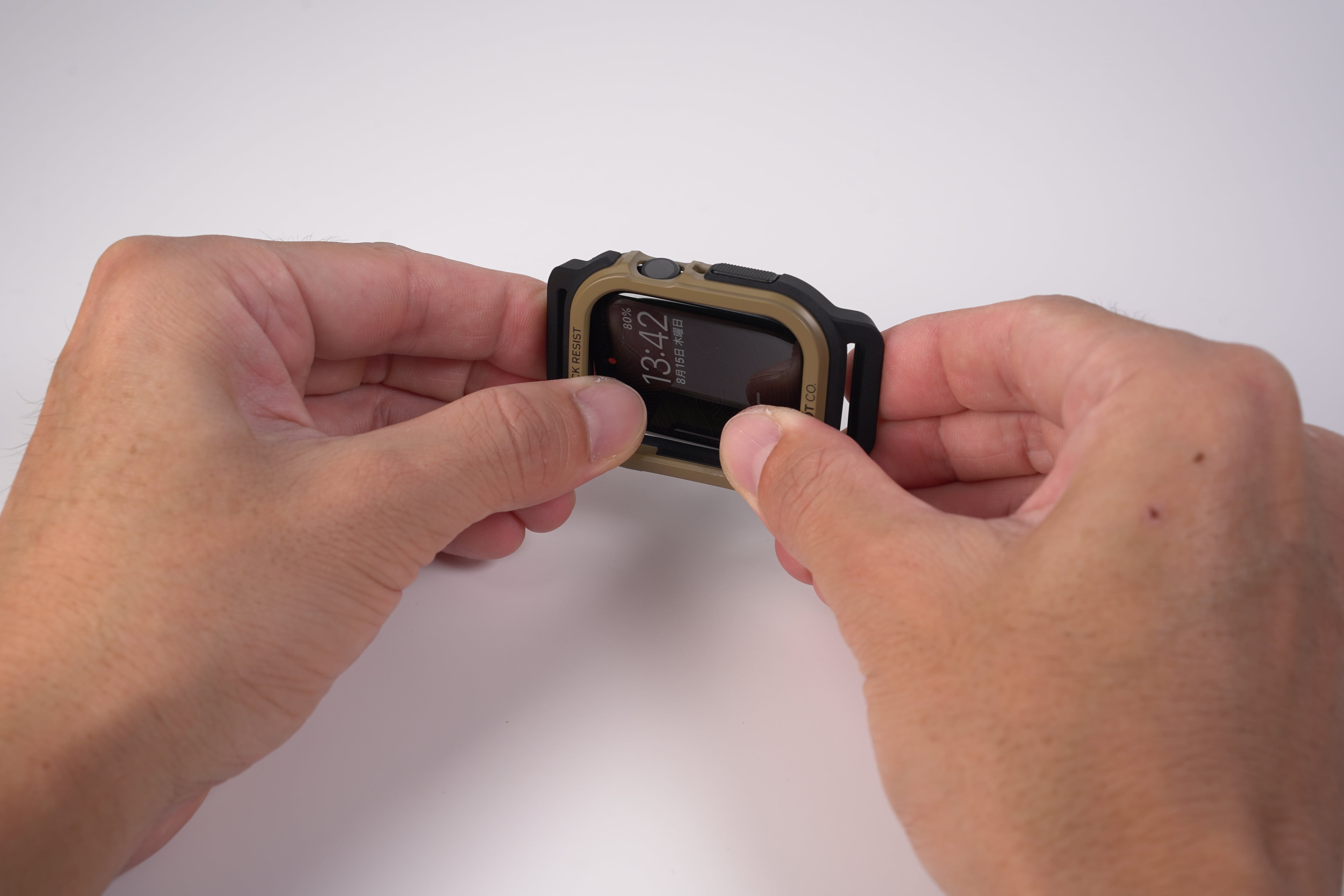 Apple Watch本体を本ケースに嵌め込む際は、「デジタルクラウン側」から先に嵌め込んでください(画像15枚目)