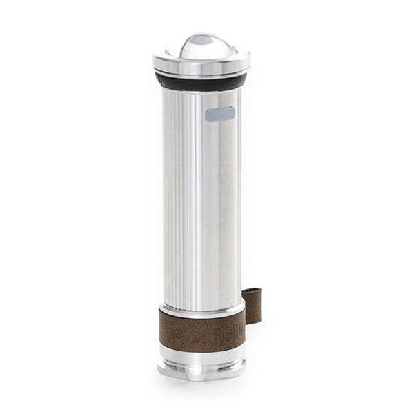 湾曲したドームレンズはヴィンテージな雰囲気を漂わせ、充電ポートを覆う本革ストラップは、吊り下げループとしても機能します。また、充電式でUSB-Cに対応しています。