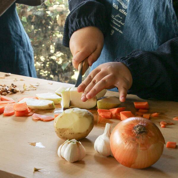 キッチンの狭いスペースでの作業や小さな食材のカットに…多くの場面でさっと使える絶妙なサイズ感。大人になっても活躍してくれる、一生もののこども包丁です。