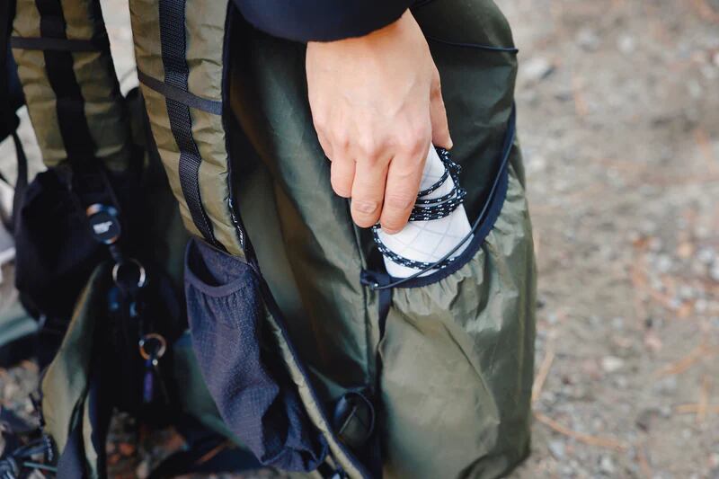 柔らかく扱いやすい素材感は嵩張りづらいので、バックパックに入れておいても邪魔に感じることはありません。